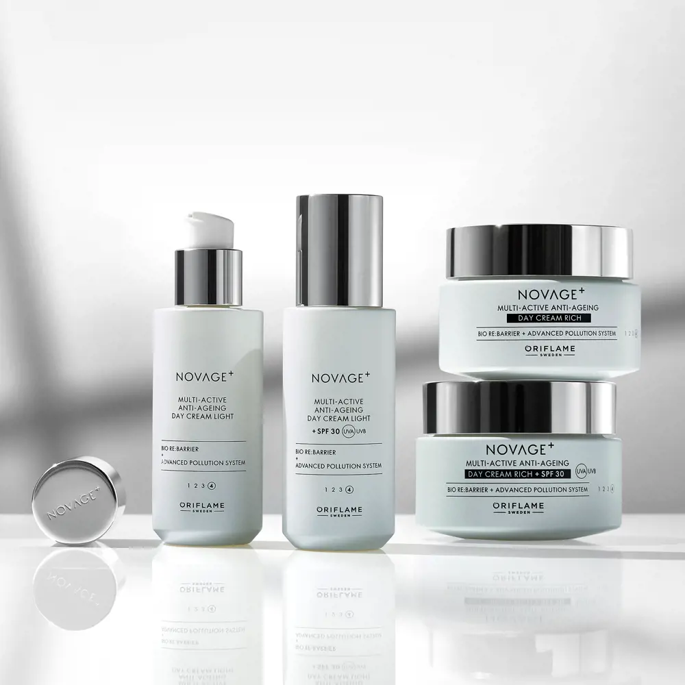 کرم روز ضد پیری مولتی اکتیو نوویج پلاس با SPF 30، به شدت پوست را آبرسانی، تقویت و از آن محافظت می‌کند تا با 10 نشانه اصلی پیری، از جمله سفتی پوست، ظهور خطوط ریز و چین و چروک و رنگ کدر و ناهموار پوست، مبارزه کند. این کرم حاوی محافظت در برابر آلودگی و اسید هیالورونیک است.