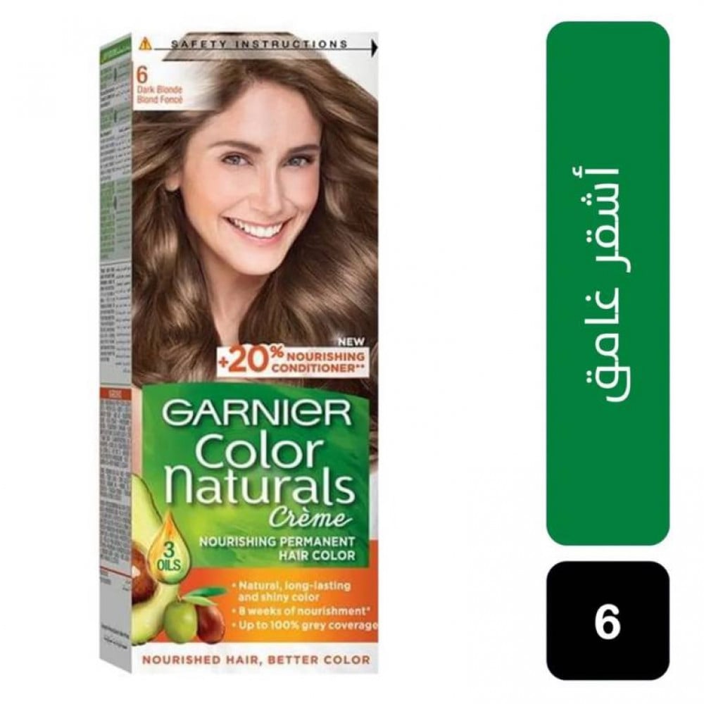 رنگ موی گارنیه کالر نچرال بلوند تیره شماره ۶ (Garnier Color Naturals)، به موهای شما تغذیه عمیقی میدهد، در انتخاب رنگ مو تردید نکنید و انتخاب خود را انجام دهید (Garnier Color Naturals)، این یک رنگ موی دائمی و مغذی است که موهای سفید را ۱۰۰٪ پوشش میدهد و همچنین حاوی نرمکننده پس از رنگ مو غنی از روغن آووکادو و روغن زیتون و کره شی باتر است که از رنگهای طبیعی به رنگهای جسورانه و آرام تغذیه میکند. الهام گرفته از رنگ موی گارنیه، طیف رنگ موی گارنیه شامل سایههای بهینه است، یک رنگ موی دائمی که اثر خود را به مدت ۸ هفته تغذیه و رنگ غنی میکند که موهای شما را به رنگهای جوانی خود با پوشش کامل موهای سفید بازمیگرداند.